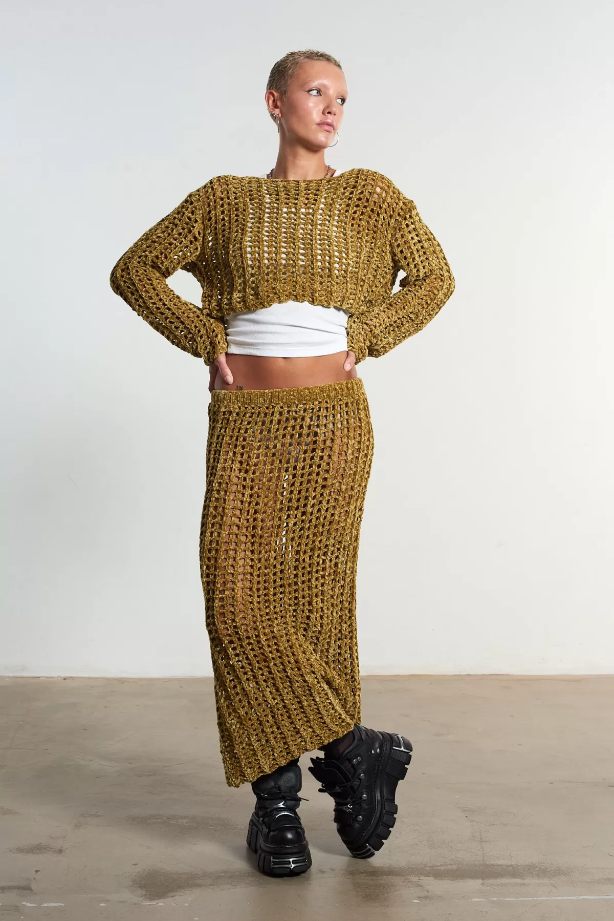 The Ragged Priest chenille open knit maxi skirtMaxi lengthMatching top availableOpen hole knitSelect your normal sizeWa…
