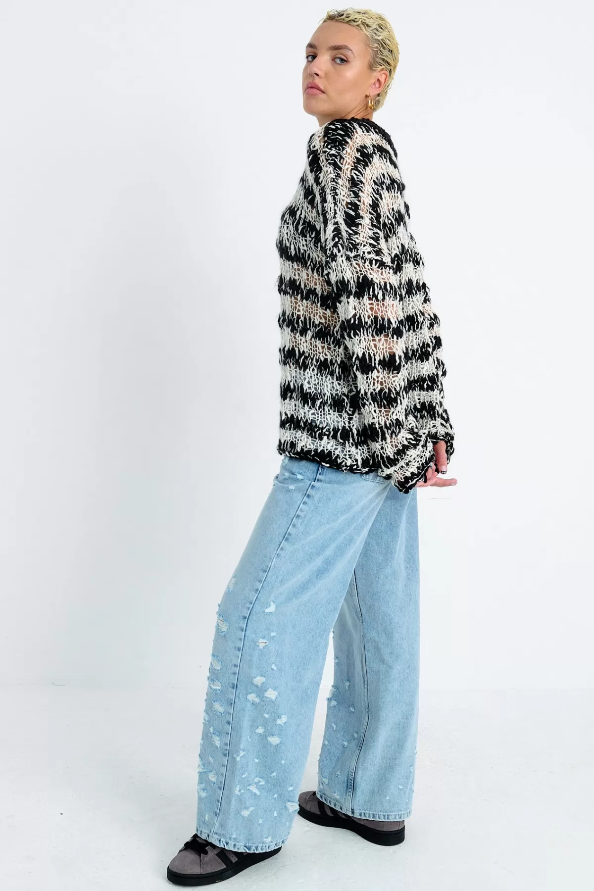 Black and white oversized chunky knit striped jumperOversized fitSelect your normal sizeMachine wash according to instru…