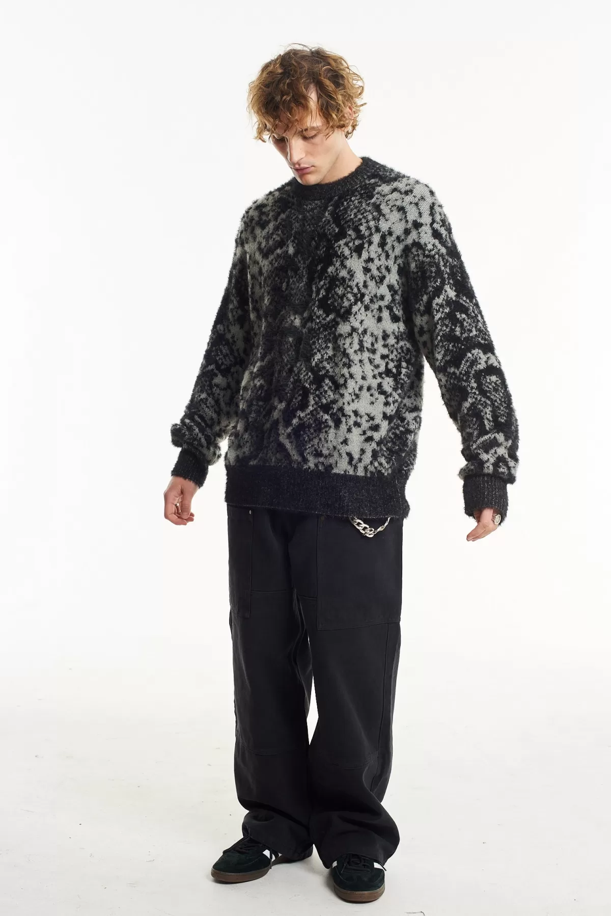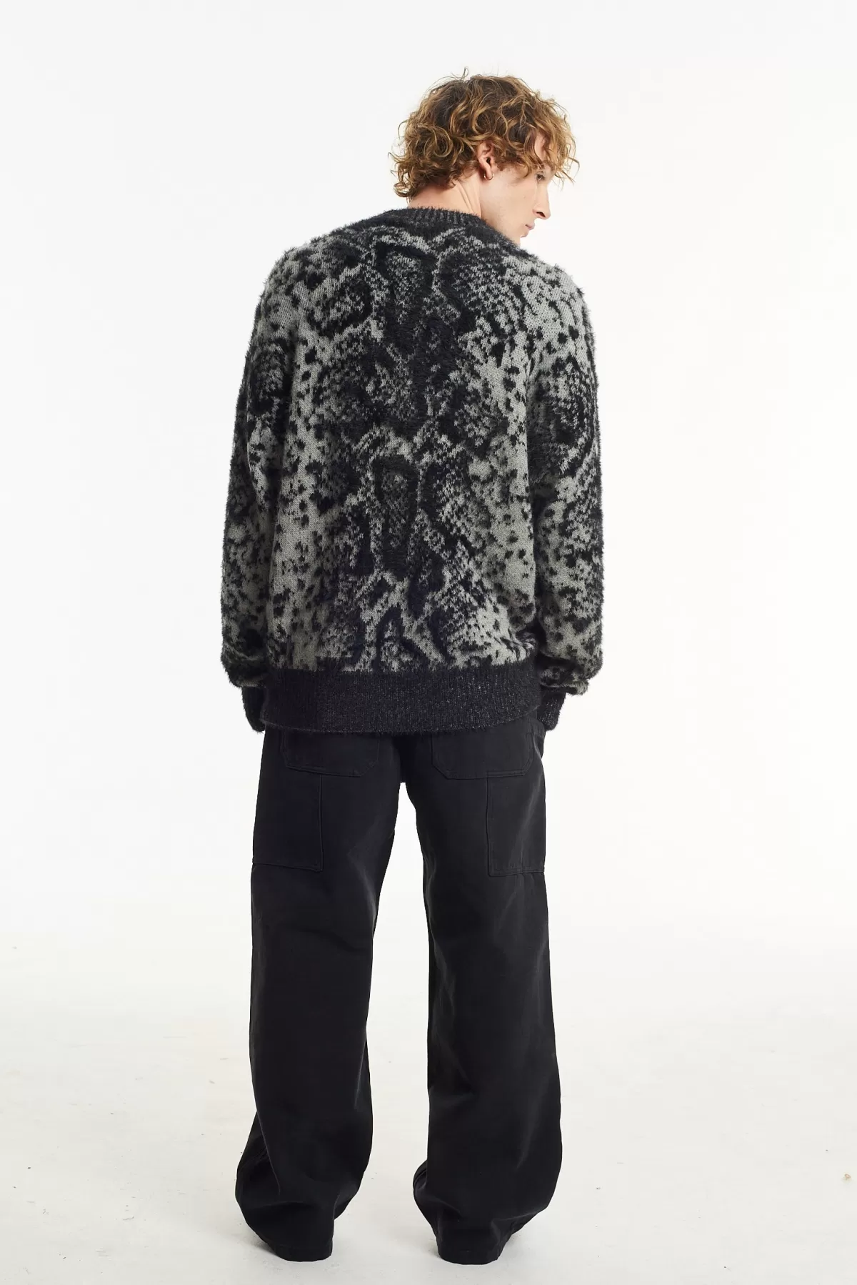 Grey & black snakeskin knitted jumperGrey & black statement knit with black trimsOversized fit. Select your normal sizeM…